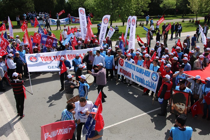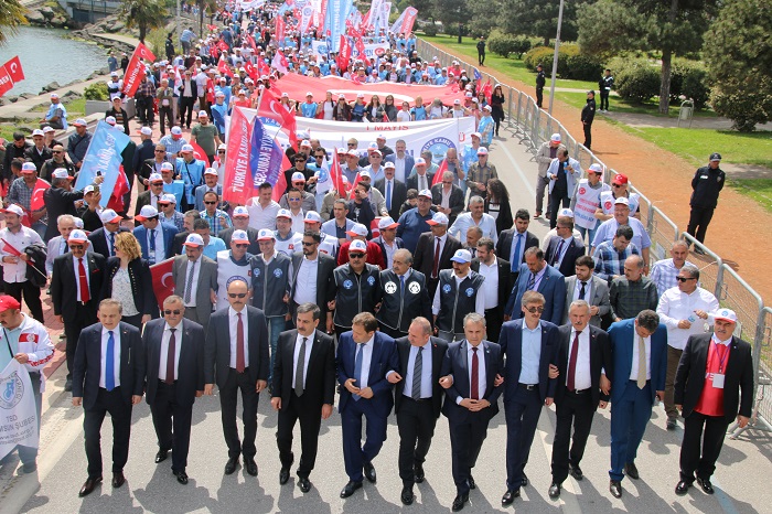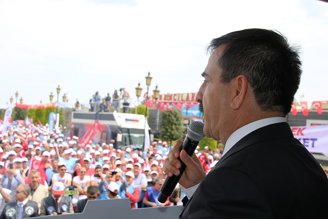 Memurun, işçinin, emeklinin sorunlarını hasıraltı etme, gündemi saptırma amacı güdenler, çalışanlara ve sendikacılığa en büyük darbeyi vurmaktadır. Çalışanların örgütlü mücadelesini zayıflatarak, küresel saldırılar karşısında bizleri güçsüz ve savunmasız bırakmak isteyenler var. Emeğinin karşılığını alamayan, alın terini akıtan ama kıymeti bilinmeyen bir çalışma hayatı gerçeği ile karşı karşıyayız. Bütün bu olumsuzlukların üstüne, bizleri birbirimize düşürmek isteyen, her fırsatta milletimiz içine nifak tohumları ekmek isteyenler var. Nice koç yiğitlerin aziz kanlarıyla sulayıp, canları pahasına vatan yaptığımız bu topraklarda, yeni bir var olma savaşının eşiğindeyiz. Tıpkı bundan 100 yıl önce olduğu gibi yurdumuz, bugün de içeriden ve dışarıdan kahpece kuşatılmaya çalışılmaktadır. Emperyalist hainler, maşa olarak kullandıkları terör örgütleri aracılığıyla, bizlere yeni bir bedel ödetme peşine düşmüş durumdadır. Elbette ki yurdumuzu işgalci ve işbirlikçi mihraklara teslim edecek değiliz. 100 yıl önce olduğu gibi bugün de bu mahfildeki bütün kesimlerle her türlü mücadeleye hazırız. Ne mutlu ki, bugün burada toplanan kalabalığa baktığımda, aydınlık bir gelecek görüyorum. Bugün burada, hak mücadelesinin kutsiyetine inanmış, Hakkı istemenin Allah emri olduğunu idrak etmiş, “birlikten kuvvet doğar' diyen milyonların iradesini görüyorum. Aziz vatanımızın dört bir yanından güzel Samsun’umuza akın eden dava arkadaşlarım, sizler kardeşliğimizin, azmimizin, kararlılığımızın işareti; geleceğimizin teminatısınız. Eğilmez baş, bükülmez bilek, yorulmaz yürek burada! Biliyorum ki, adım attığı her yere medeniyeti, mertliği, insanlığı öğreten, karşılaştığı her toplumu cesareti ve dürüstlüğü ile kendisine hayran bırakan yüksek ruh, bu milletin her bir ferdinin yüreğinde ilk günkü saflığıyla yaşıyor. Biliyorum ki, Kur’an’ı baş tacı edip, Uzak Asya’dan Avrupa içlerine kadar tüm coğrafyayı İslam’la şereflendiren Türk milleti yıkılmaz. Bizleri ayırmaya, kardeşi kardeşe kırdırmaya çalışanlar asla bu emellerine ulaşamayacak. Bir arada daha çok çalışacağız, daha çok üreteceğiz, haklarımızı elde edebilmek için daha güçlü bir mücadele vereceğiz. Bunun için Devletimizin kurulduğu günden bu yana idealimiz olan milli egemenlik, milli devlet ilkesinden sapmayacağız. Gayri milli oluşumlarla iç içe geçmiş hiçbir anlayışa prim vermeyecek, milli sendika anlayışını yükselteceğiz.