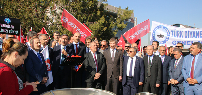 Hep bir ağızdan atılan sloganlar ve ellerde taşınan dövizler eşliğinde kamu çalışanları memur maaşlarının yetersizliğini yetkililere bir kez daha haykırdı.