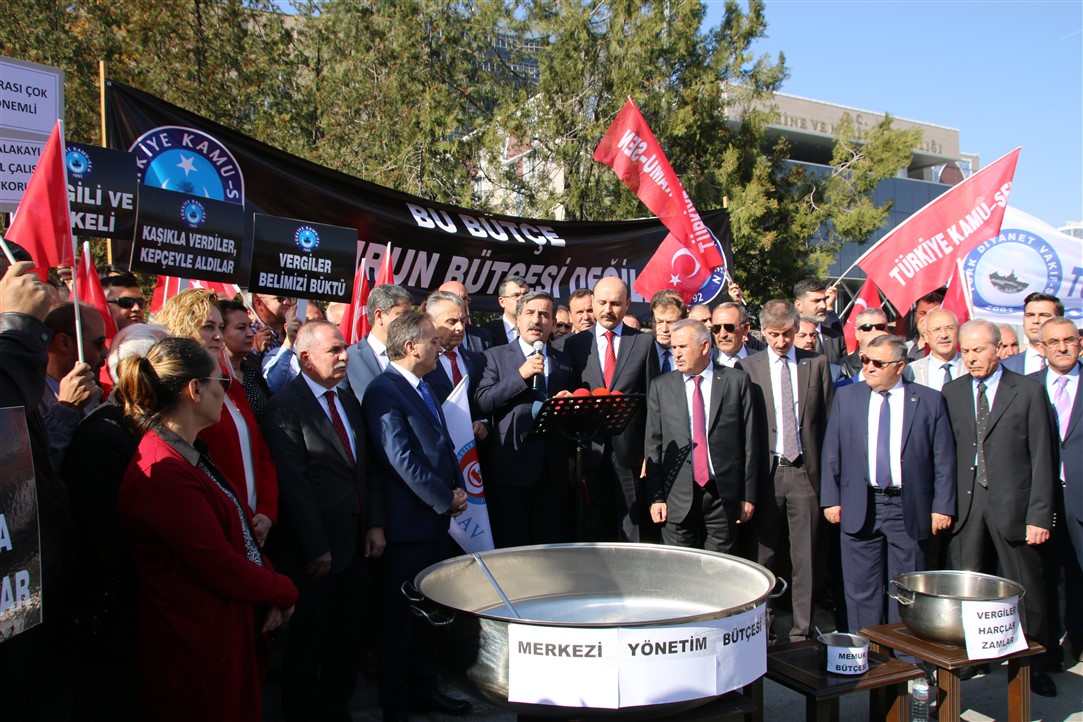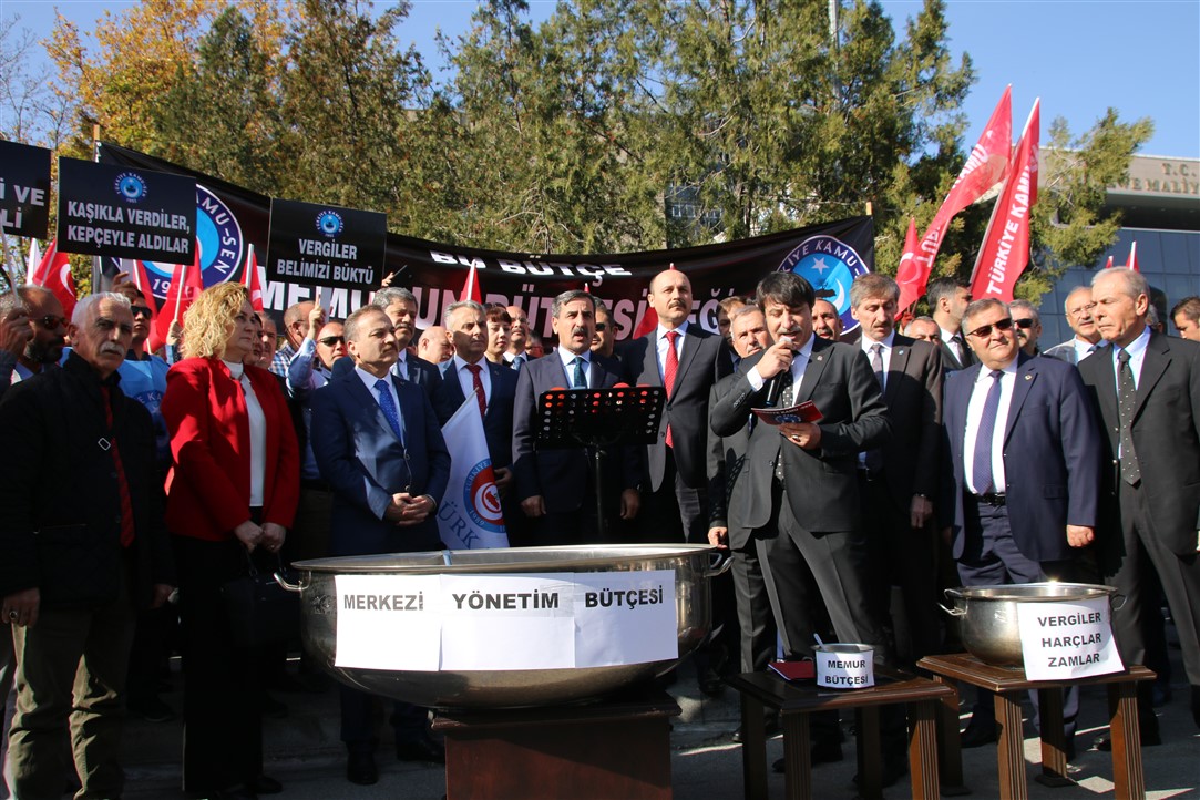 Türkiye Büyük Millet Meclisi’nde görüşülmeye devam eden 2020 yılı Merkezi Yönetim Bütçe Kanunu Tasarısında “Memur unutulmasın” demek için başkent Ankara’da Hazine ve Maliye Bakanlığı önünde, eş zamanlı olarak ise tüm illerde alanlara inerek “Bu bütçe memurun bütçesi değil” dedik.
