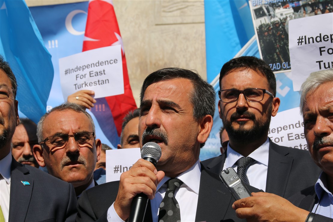 “Katil Çin, Doğu Türkistan’dan defol, Hak, Hukuk, Adalet, Türkistan’a Hürriyet…' sloganlarının atıldığı protesto eyleminde konuşan Genel Başkanımız Önder Kahveci, “Çin hükümeti, zorla kendi topraklarına kattığı ve zorla vatandaş yaptığı soydaşlarımızdan yaşama hakkını dahi esirgerken hangi insan hakkından bahsedecek, hangi değerleri savunacağız?' dedi.