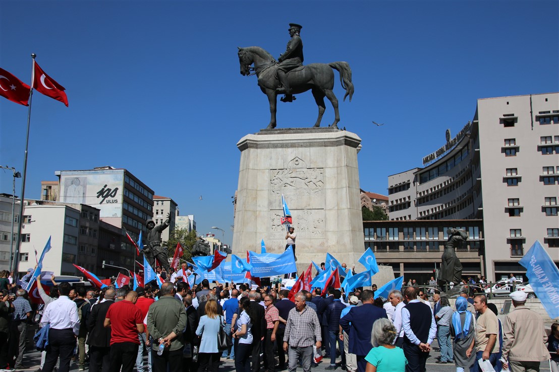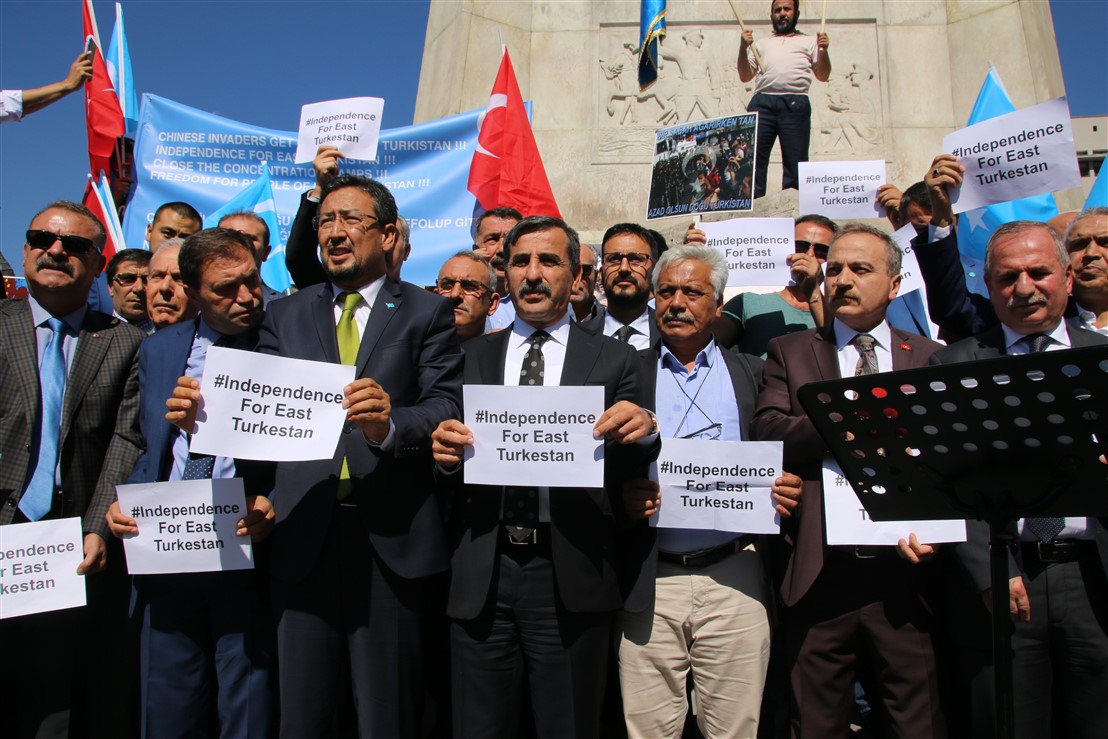 Düzenlenen protesto eylemine Genel Başkanımız Önder Kahveci, sendikalarımızın Genel Başkanları, Genel Merkez Yöneticilerimiz, Şube Başkanlarımız, üyelerimiz, Doğu Türkistan Derneklerinin yöneticileri ve çok sayıda vatandaş katıldı.
