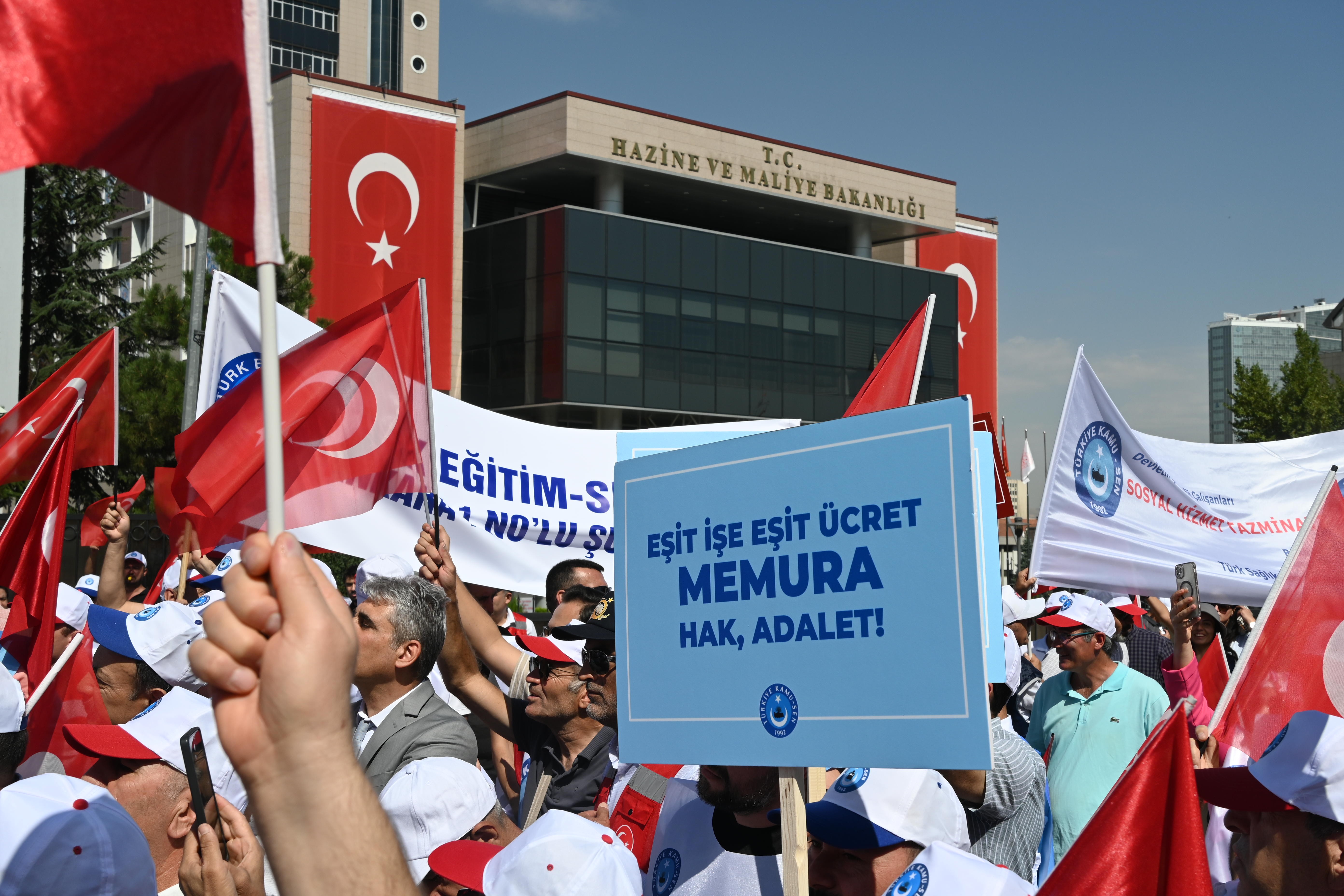 Bizler; her gün canla başla, fedakârca görevini eksiksiz yerine getiren, memleketin dört bir yanında devletini onurla temsil eden kamu çalışanlarıyız. Ancak bu ülkenin yükünü sırtlayan memurlar, hak ettiği ücreti alamıyor! Emeğimizin karşılığını alamadığımız için buradayız, hakkımızı almak için buradayız! O halde buradan açık ve net söylüyoruz: